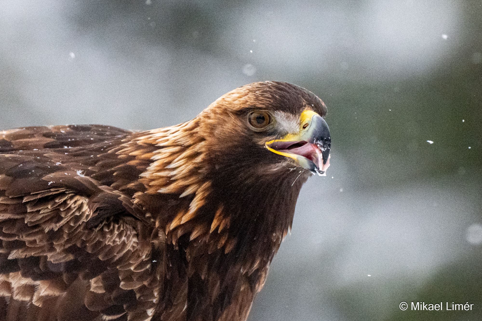 Strax efter 08 skriker en Duvhök från skogen, men kommer inte ned och äter, en trolig anledning ser vi när det strax sitter två Kungsörnar i blixttallen (ynglingen och antagligen en förälder), den subadulta flyger dock snart tillbaka till branten.