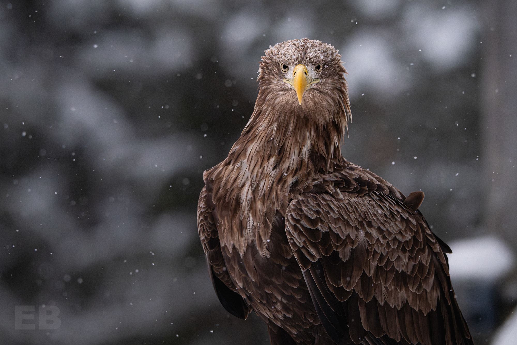 Skatorna som suttit bredvid örnen och ätit fortsätter äta till och från (några retfulla nyp i örnens stjärtfjädrar gör dom också..) när dom är borta kommer småfåglarna fram och även enstaka Korp och Kråka är nere och äter.