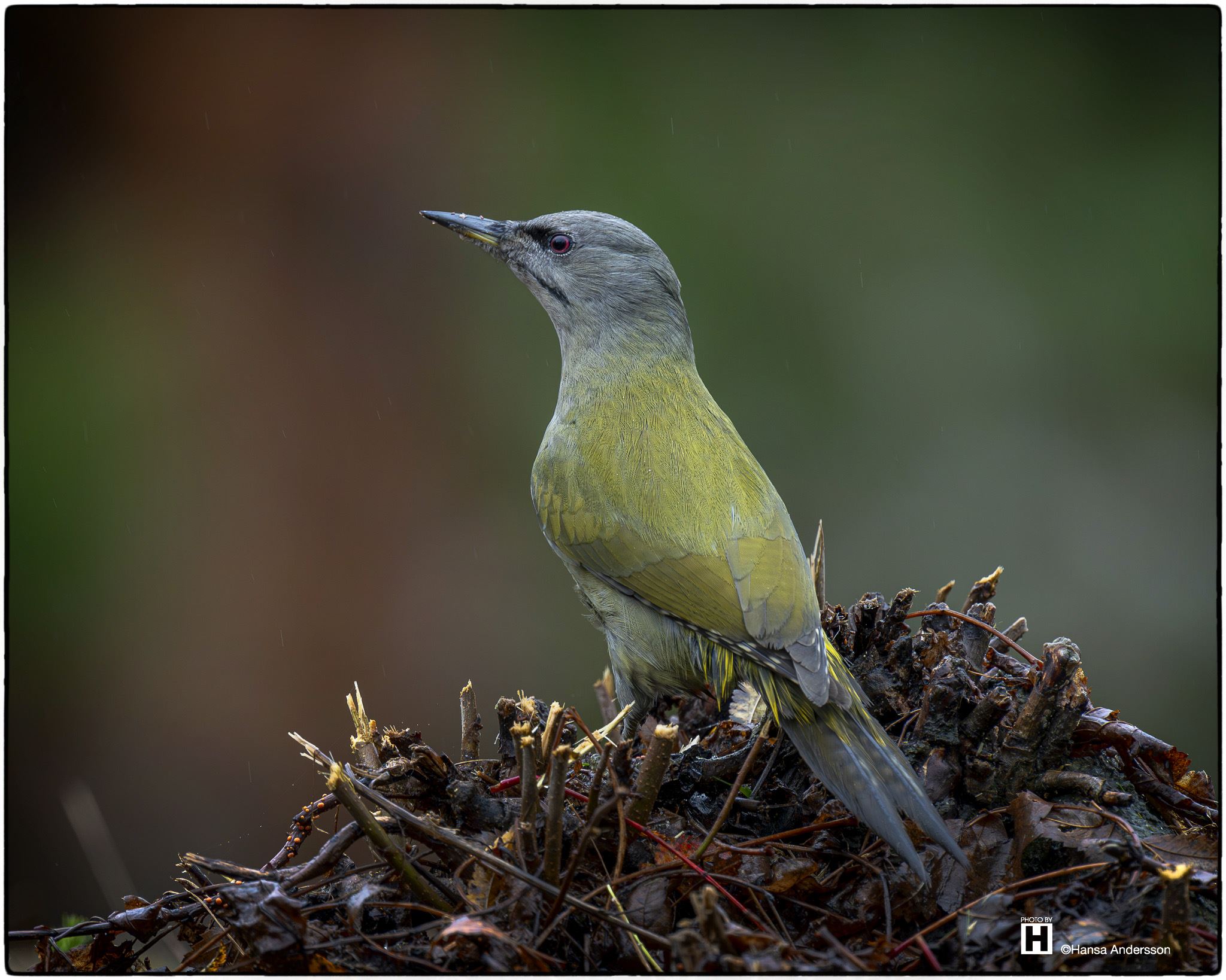 En gråspett, hane